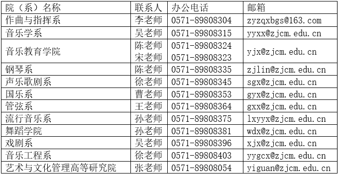 (三)浙江音乐学院招生信息以学校官方网站http://www.zjcm.edu.cn公布的信息为准,其他任何网络平台均非我校招生信息发布平台,请广大考生及家长注意仔细甄别。