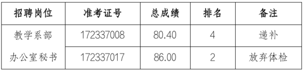 2023年第二批公开招聘(非教学岗)递补体检(考核)人员名单