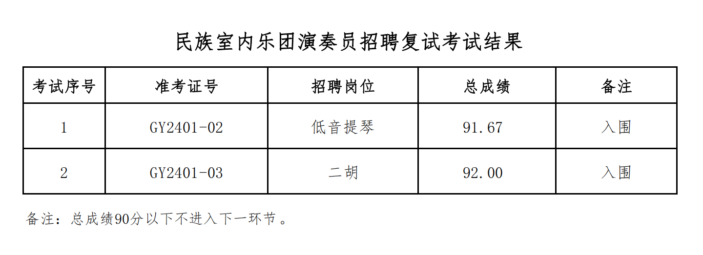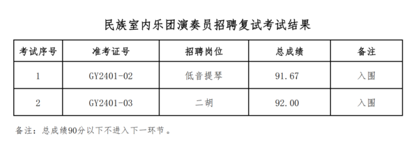浙江音乐学院民族室内乐团演奏员招聘复试考试结果