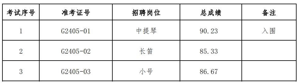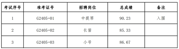 室内管弦乐团演奏员招聘复试考试结果