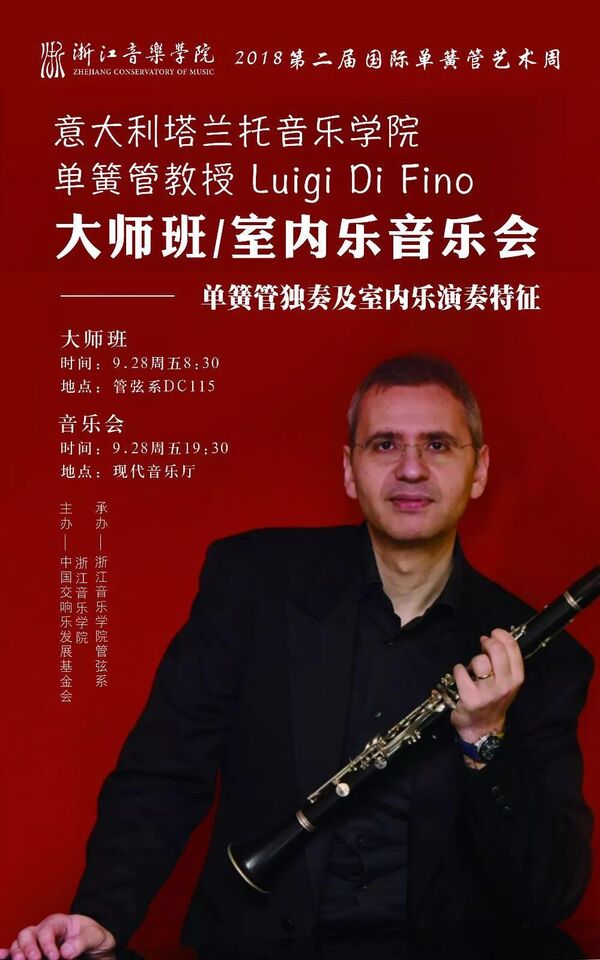 意大利塔兰托音乐学院单簧管教授Luigi Di Fino大师班/室内音乐会