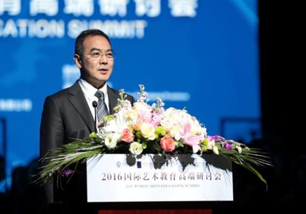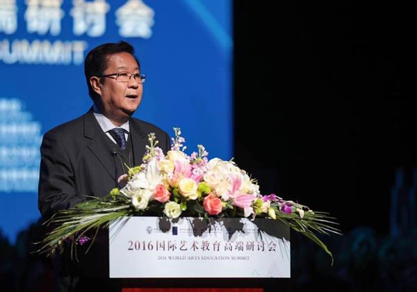开幕式上,中国教育国际交流协会会长、原教育部副部长刘利民从世界格局、国家视野、生命意义的不同维度,深刻剖析了艺术、艺术教育的独特作用。他认为,我国政府高度重视文化和艺术在实现中华民族伟大复兴中的基础作用和重要意义。在刚刚发布的《中国学生发展核心素养》中,把培养学生“具有艺术知识、技能与方法的积累;能理解和尊重文化艺术的多样性,具有发现、感知、欣赏、评价美的意识和基本能力;具有健康的审美价值取向;具有艺术表达和创意表现的兴趣和意识,能在生活中拓展和升华美等”作为重要内容,放在了基础性位置。(图为中国教育国际交流协会会长、原教育部副部长刘利民)