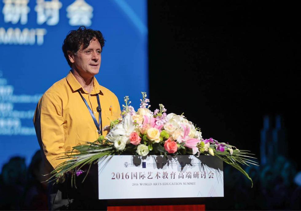 浙江省教育厅副厅长韩平、世界艺术教育联盟执行委员会会长拉尔夫•巴克分别代表有关方面致欢迎词。(图为世界艺术教育联盟执行委员会会长拉尔夫•巴克)