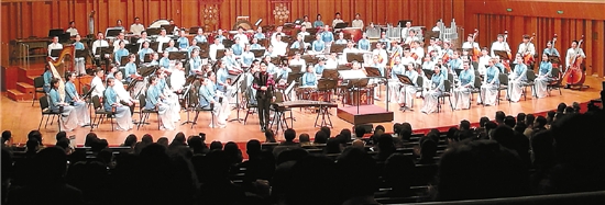 国乐团还演奏了具有“江南风味”的经典作品——《西湖寻梦》《雪意断桥》和二胡经典作品《悲歌——江河水》、以及富有时代感的经典作品《延河随想》。