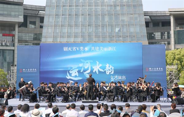 4月22日下午,由浙江音乐学院、中共下城区委、下城区人民政府联合主办的“剿灭劣V类水·共建美丽浙江”——“运河水韵”专场文艺演出在西湖文化广场举行。中共浙江省委宣传部副巡视员、干部处处长吴熔,浙江省教育厅副巡视员吴永良,中共下城区委书记陈卫强,浙江省文化厅副厅长、浙江音乐学院党委书记褚子育,中共下城区委常委、宣传部长赵一文,浙江音乐学院党委副书记贾秀英,下城区人民政府副区长奚灵平、邵伟华,浙江省教育厅宣教处处长薛晓飞等领导出席。