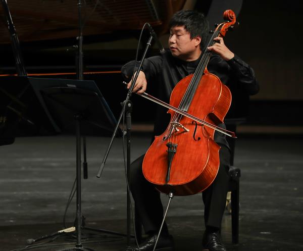 紧接着,曲风一转,低沉的大提琴旋律在耳畔响起,青年大提琴演奏家张宝君将听众的思绪带入了乐章的中段,弦乐轻柔地呜咽,仿佛是德沃夏克在诉说音乐背后的故事。细细品位音乐的情调,淡淡的忧伤,悲苦之情在小提琴细腻流动的拉弦声中不断升华,奏出了曲章的最高潮部分。主旋律不断变奏,给听众又一种体验。钢琴、提琴的完美配合,使整首乐章又变得轻快明朗起来。一曲奏完,现场掌声雷动。
