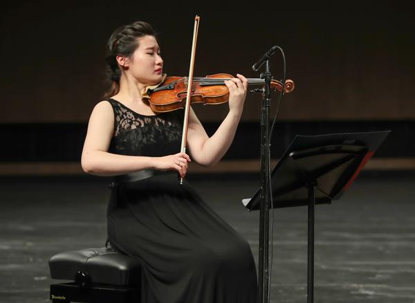 坐在钢琴一侧的青年小提琴演奏家石帅伴随着音律,舒展开琴弓,高度默契的合奏,为音乐会的开篇乐章增添了绚丽的色彩。她个人激情澎湃的舞台魅力,赢得了观众的阵阵掌声。