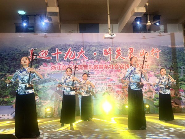 这里,正在进行浙江音乐学院音乐教育系团委“喜迎十九大,醉美灵山行”专场社会实践演出。