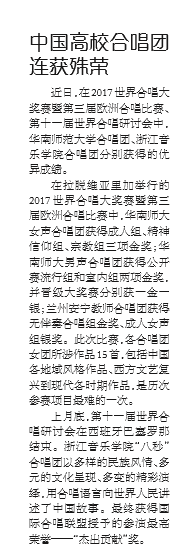 音乐周报:中国高校合唱团连获殊荣