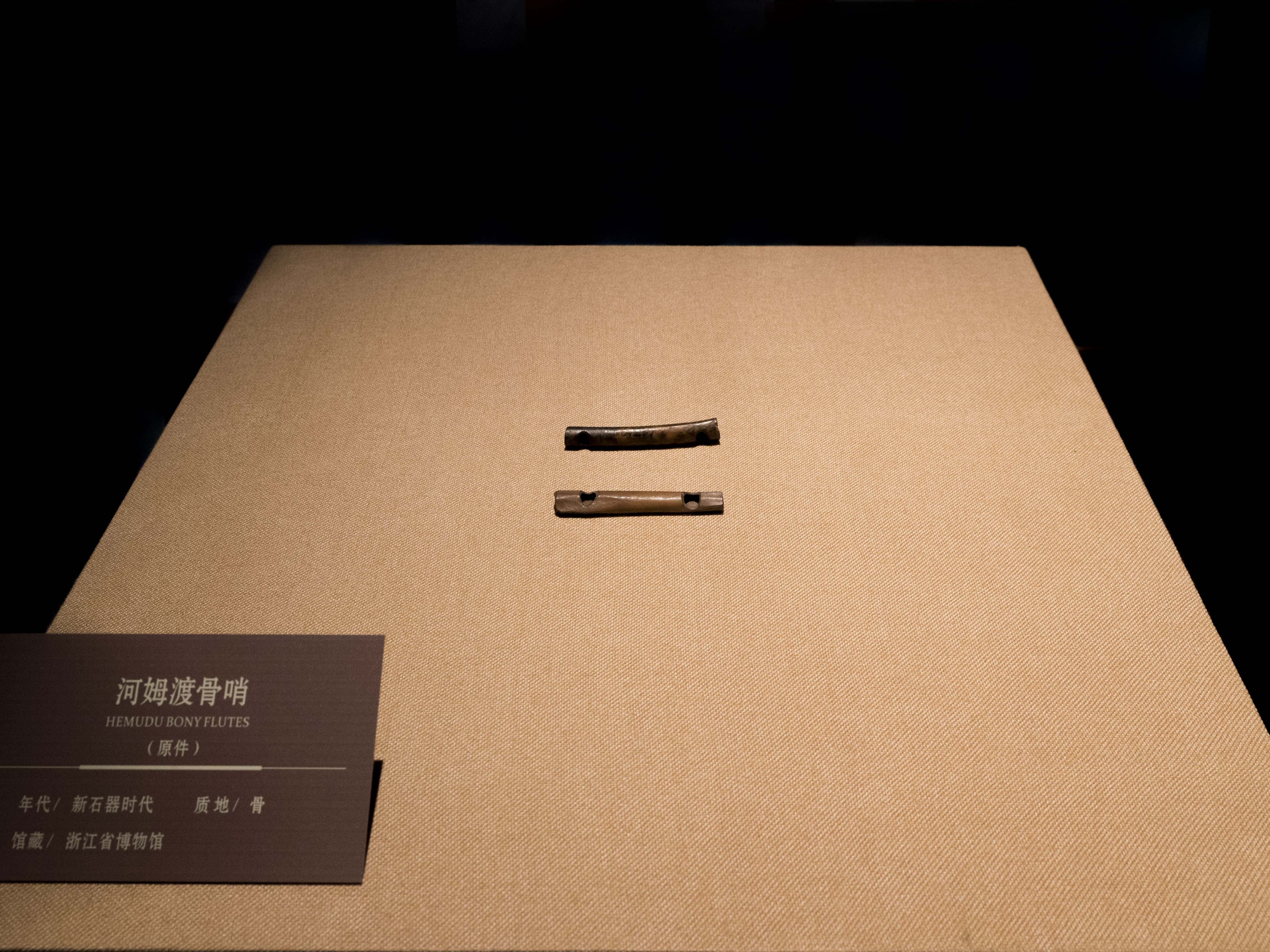 “骨灰级”宝贝在“吴歈越吟”展区隆重展出,由浙江博物馆提供的河姆渡骨哨、唐代越窑青瓷鸟形埙、北宋八音盅、清代十六弦筝、清代龙纹竹萧等17件代表浙江历史音乐特色的乐器在馆内展出,从七千年的骨哨到清代的竹萧,独属于浙江地方的音乐文化在这里缓缓荡漾,伴着吴侬软语的越剧风韵,参观者感受着浙江音乐的独有风情,一种家乡的情怀油然而生。除此之外,该展区还展出了具有浙江特色的舟山锣鼓,唢呐、笛子、十面锣、排鼓、二胡、阮等乐器放置其中,让参观者对于浙江音乐有了更加深入的了解。