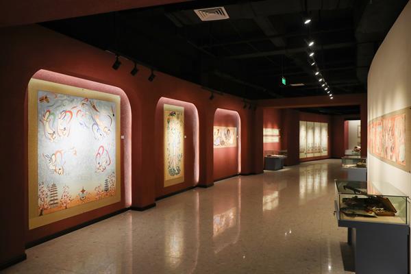 “敦煌乐舞——常书鸿、李承仙丝绸之路艺术展厅”主题集中、特点鲜明、文物珍贵、独一无二,既有敦煌石窟壁画、雕塑中的乐舞内容,也有敦煌卷子中的曲子、变文、乐谱、舞谱等,还展出了常书鸿、李承仙二位先生使用过的皮箱、画具、笔记本、奖状、照片等相关珍贵文物。