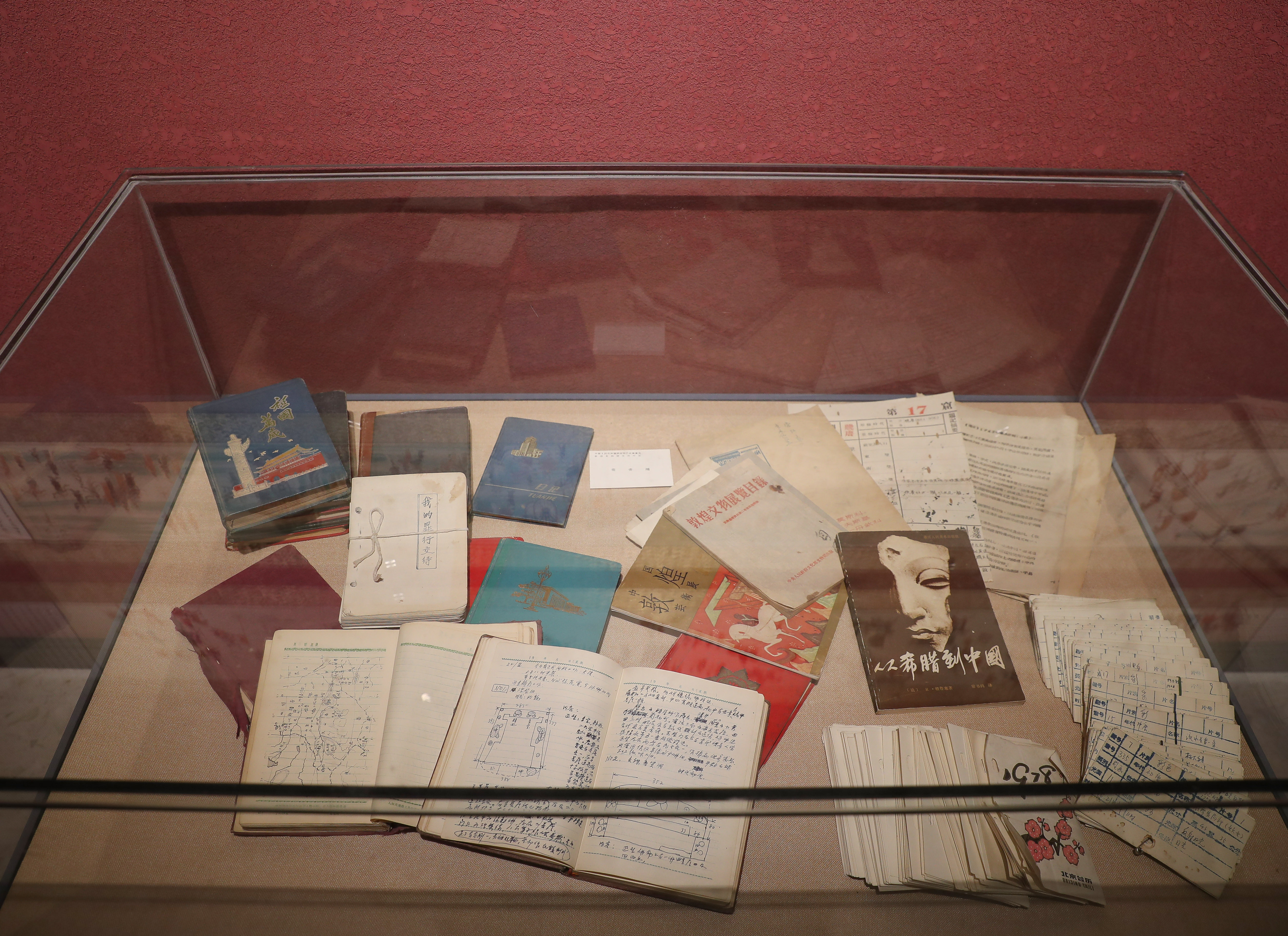 “敦煌乐舞——常书鸿、李承仙丝绸之路艺术展厅”中,既有敦煌石窟壁画、雕塑中的乐舞内容,也有敦煌卷子中的曲子、变文、乐谱、舞谱等,还展出了常书鸿、李承仙二位先生使用过的皮箱、画具、笔记本、奖状、照片等相关珍贵文物。