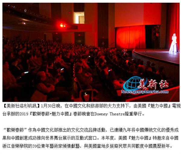 美新社:2019欢乐春节魅力中国春节晚会洛杉矶精彩登场