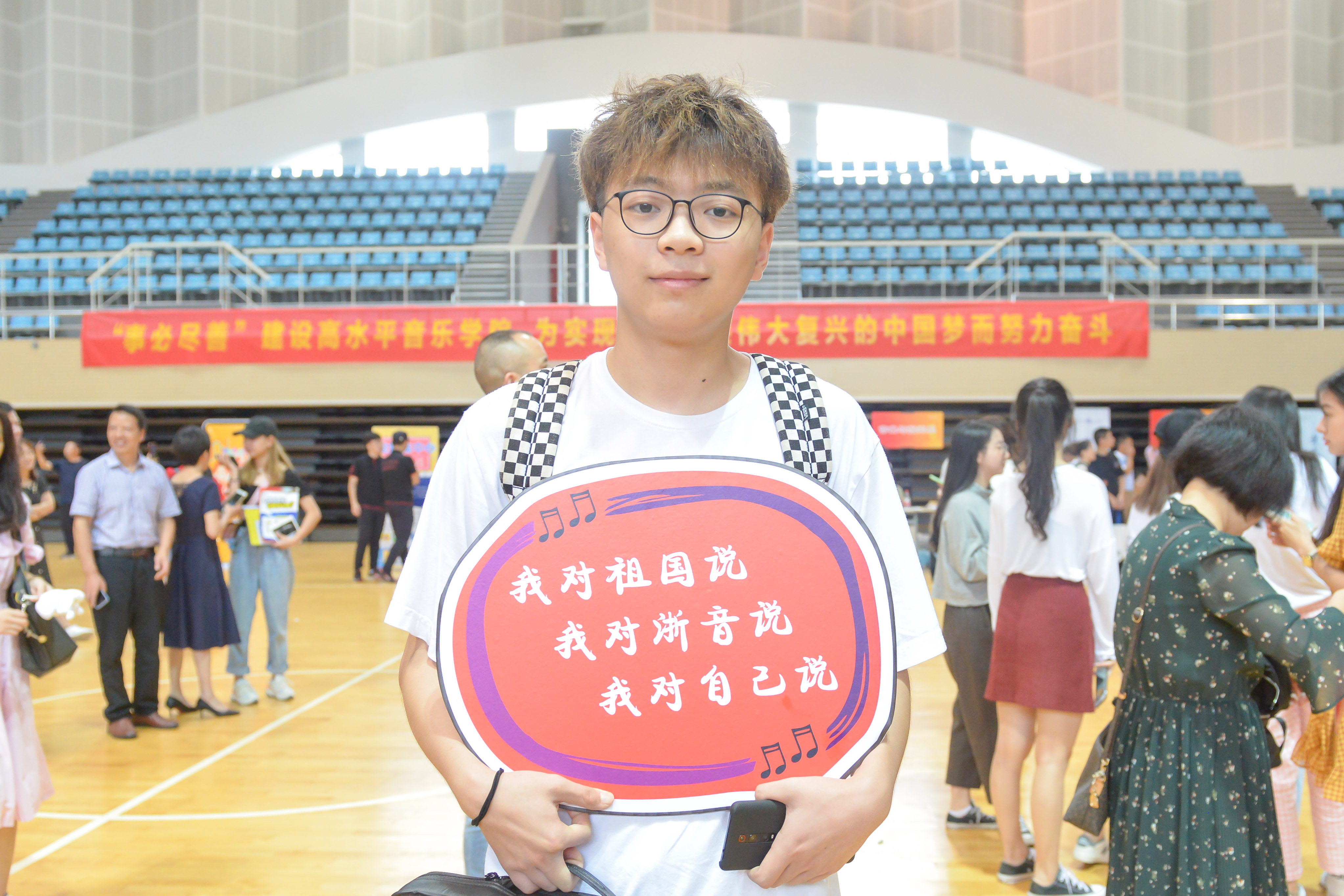 “西湖之畔,之江之滨,人才辈出,大师故乡,这里是中国新音乐的摇篮……”在师哥师姐们的带领下,19级新生自发齐唱校歌,开启爱国爱校第一课,那动听的歌声、悠扬的旋律久久回荡在浙音上空。