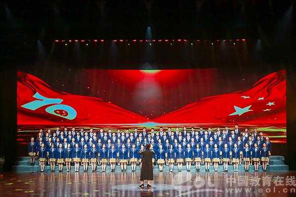 最后,现场1000余名师生齐唱《我和我的祖国》,大家挥舞着手中的小国旗,用歌声表达对祖国的热爱之情,共同祝福中华人民共和国成立70周年。