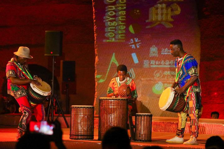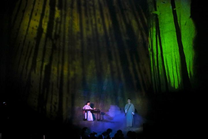 10月24日下午,2号洞窟里,主题为《五彩缤纷》的开幕演出既空灵而又美妙。既有琴萧和鸣《无诤颂》、青瓷瓯乐《听·瓷》等展示中国传统民乐和非物质文化遗产的优美乐曲,也有《洞境云歌》这样融合了越剧人声、视觉影像与电子音乐的现代化作品。主创团队依托石窟结构与声音学完美结合,用新音乐、新媒体多方位、多角度呈现全新的艺术形态,探究古老洞穴神秘与久远的历史。