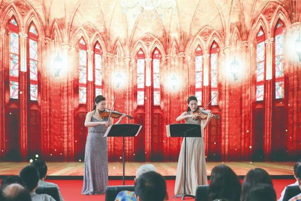 管弦系青年教师演奏二重奏《帕萨卡利亚》。