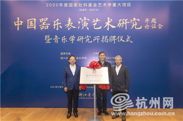 论证会之前,举行了浙音音乐学研究所成立揭牌仪式。新成立的音乐学研究所将积极对标建设国际一流高水平音乐学院,全力推进包括“中国器乐表演艺术研究”2020年度国家社科基金艺术学重大项目在内的重大科研项目的实施,更好地推动学校音乐学科发展与科研创新,构建彰显时代特征、适应新时代音乐教育发展、与培养高素质创新型音乐人才要求相适应的学术科研机制。