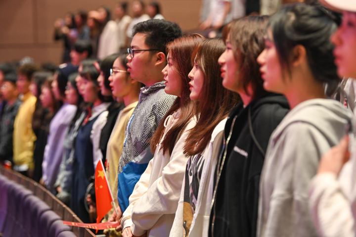 浙音师生齐唱《义勇军进行曲》。