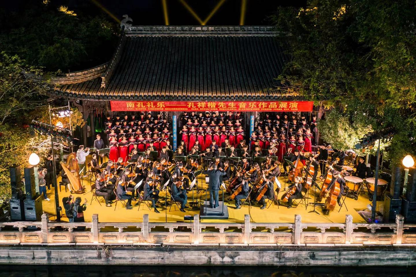 昨晚,“南孔礼乐·孔祥楷先生音乐作品展”在衢州孔氏家庙演出。据悉,本次展演由浙江音乐学院、中共衢州市委宣传部、衢州孔氏南宗家庙管理委员会主办,衢州市文化广电旅游局、衢州南孔文化发展中心和浙江音乐学院作曲指挥系、管弦系、音乐工程系、音乐教育学院承办。