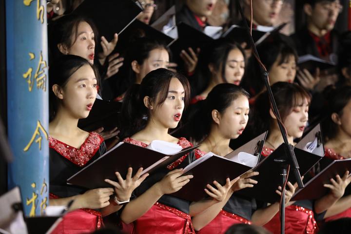 11月21日晚上,孔祥楷音乐作品展演专场音乐会在孔氏家庙后花园上演,浙江音乐学院百余名演奏(唱)家在这里创新展示孔祥楷原创音乐作品,重新诠释南孔文化,让祭祀古乐再传新声,令现场热潮涌动。