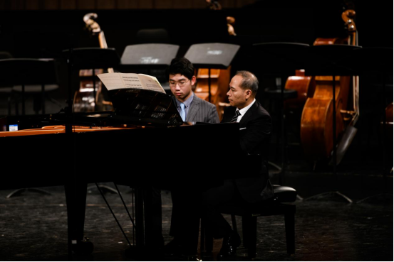 上半场的最后一首作品《冬燃》(为小提琴、大提琴与钢琴而作,2019)在刚刚结束的第十一届音乐舞蹈节中获得了西洋组作品金奖,为张泽艺室内乐套曲《四季》中的第四首。作品伊始便以钢琴上几个简单有力的和弦营造了一幅凛冽的冬之意象,随即主题旋律在小提琴和大提琴之间不断进行对比或模仿。而后乐器之间关系从相隔到慢慢融汇在一起,并共同爆发出如火般的热情。在冰与火的对比之间,音乐素材互相拉扯,绽放出了耀眼光芒般的音响色彩。