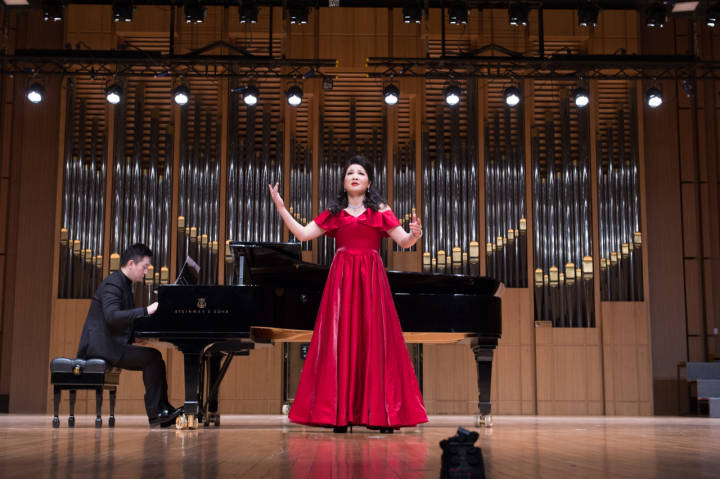 4月16日晚,“毛泽东诗词艺术歌曲音乐会”首场在浙江音乐学院标准音乐厅举办。音乐会是浙江音乐学院创作与表演课题,由浙江音乐学院副教授金美玲担任负责人并领衔演唱。