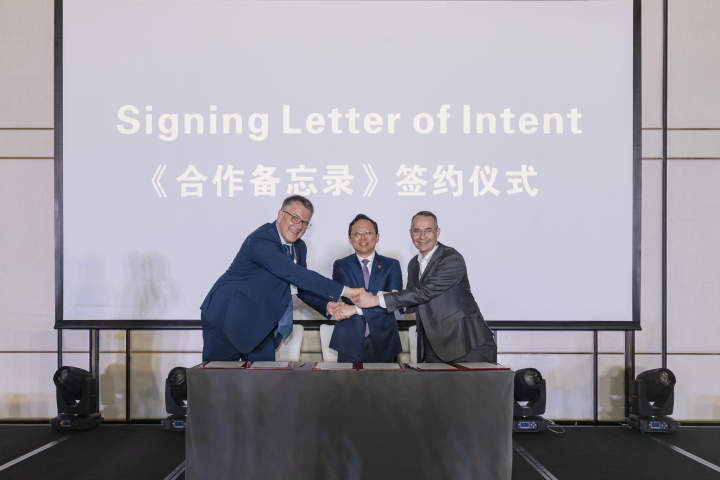 此外,瑞士联邦政府科技文化中心执行主任、瑞士驻上海总领馆科技领事孟善能,浙江音乐学院院长王瑞,蒙特勒爵士音乐节中方代表陶安然共同签署合作备忘录。未来,三方将携手共同在艺术品牌打造、国际交流合作、创作与人才培养,特别是在前沿性数字音乐技术领域开展全方位合作,并共同商定将沉浸式视听空间瑞士圆屋顶落户浙江音乐学院。