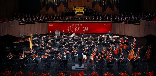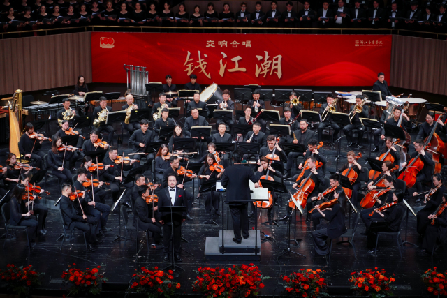 钱江奔涌,江山多娇,在浙江广袤的土地上,中国共产党的百年辉煌从这里起步,无数风流人物和激昂故事轮番在这里登场。5月28日晚,由浙江音乐学院倾情打造的交响合唱《钱江潮》在学院音乐厅精彩上演。这是浙江音乐学院为庆祝中国共产党成立100周年而力推的一台大型原创音乐作品,浙音师生联合杭州爱乐乐团,立足钱江大地百年潮涌和红色故事,为广大观众合力奉上了一场技艺精湛、气势恢宏的艺术精品。