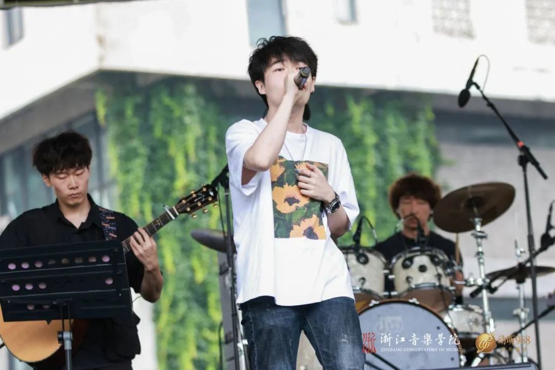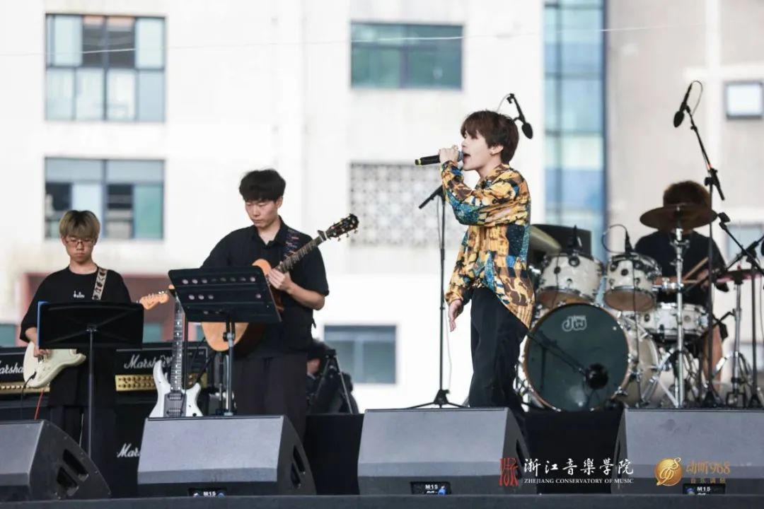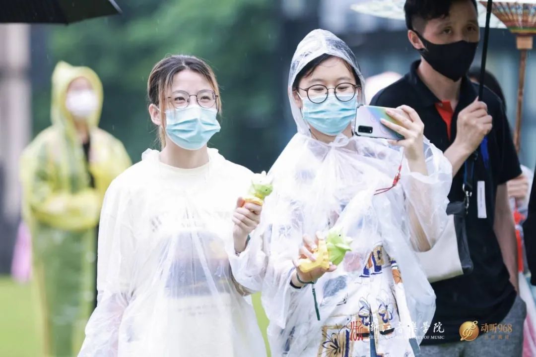 从崔健的《假行僧》到黑豹乐队《dont break my heart》再到beyond乐队的《海阔天空》,熟悉的旋律瞬间把大家带回到那个众星璀璨的摇滚年代。文彦杰、酒心女子乐队、胡谷晟……来自浙江音乐学院流行音乐系的新生代音乐人轮番登场,以饱满的热情为现场观众带来一场酣畅淋漓的演绎。音乐会的最高潮是《我爱你中国》的旋律响起,台下200位观众在雨中齐声高歌,“ 我爱你中国,心爱的母亲,我为你流泪,也为你自豪…… ”在歌声中忆往昔峥嵘岁月,在歌声中看今朝旖旎风光,用年轻的歌声致敬经典,庆祝建党100周年。