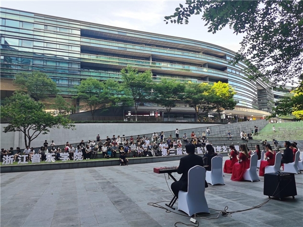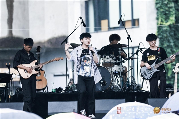 6月13日下午,端午节小长假的第二天,艺创小镇·凤凰创意产业园区的大草坪上,一场致敬经典——华语摇滚专场音乐会在雨中开唱。从崔健的《假行僧》到黑豹乐队《dont break my heart》再到beyond乐队的《海阔天空》,熟悉的旋律瞬间把大家带回到那个众星璀璨的摇滚年代。文彦杰、酒心女子乐队、胡谷晟……来自浙江音乐学院流行音乐系的新生代音乐人轮番登场,以饱满的热情,为现场观众带来一场酣畅淋漓的演绎。