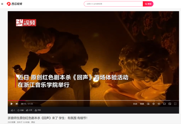 西瓜视频:浙音师生原创红色剧本杀《回声》来了 学生:有氛围 有细节!