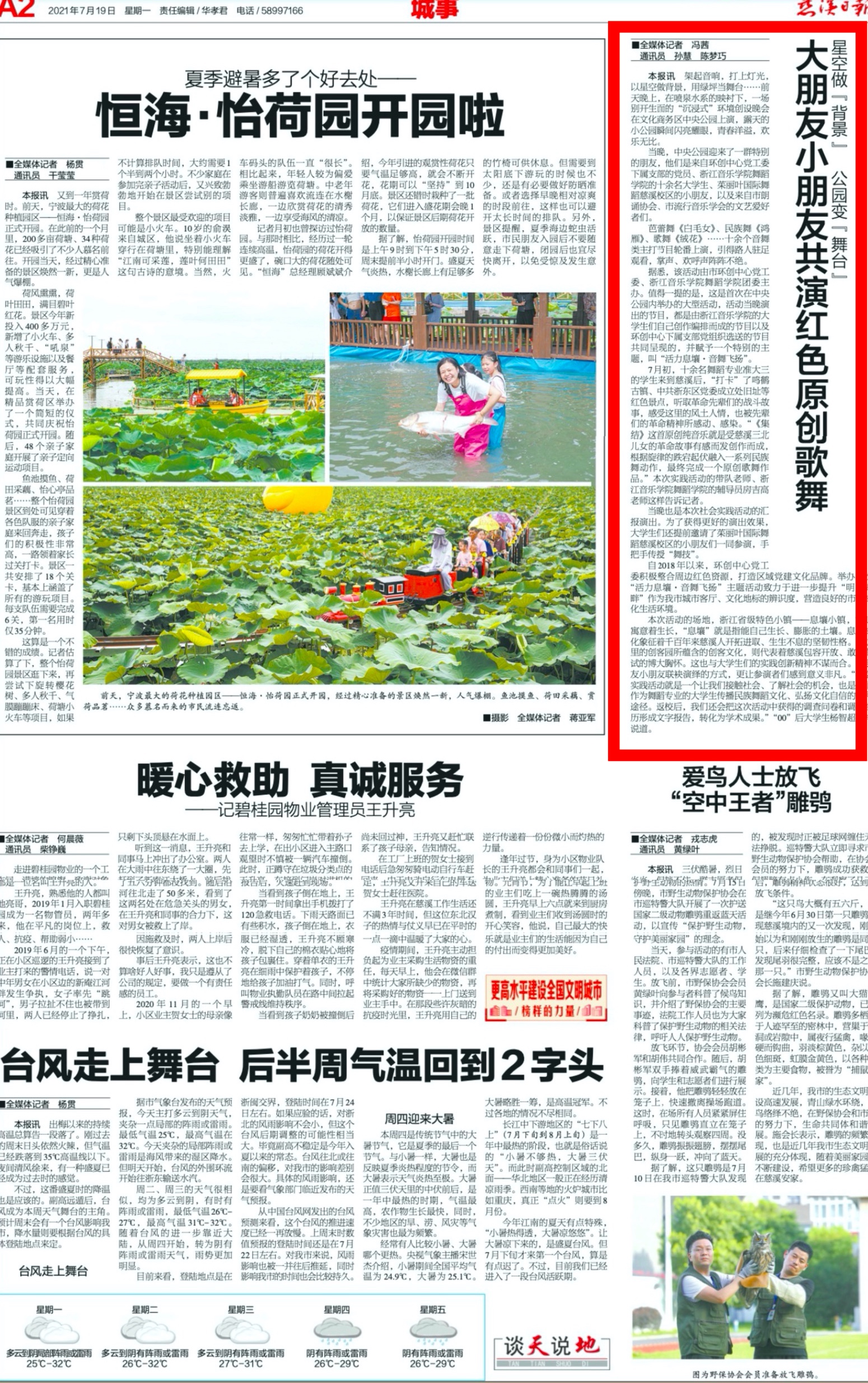 慈溪日报:星空做“背景“,公园变“舞台“ 大朋友小朋友共演红色原创歌舞