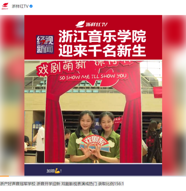 经视新闻(视频号):浙产好声音冠军学校 浙音开学迎新 戏剧影视表演成热门 录取比例156:1