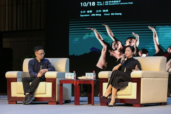 当天上午,金星围绕“舞蹈与音乐的关系”这一主题,在浙音开展讲座,通过对于自己编创的《半梦》《脚步》《无路可逃》《贵妃醉“久”》等舞蹈作品的解析、讲述创编经历等方式,展现了自己对于舞蹈与音乐的观点。