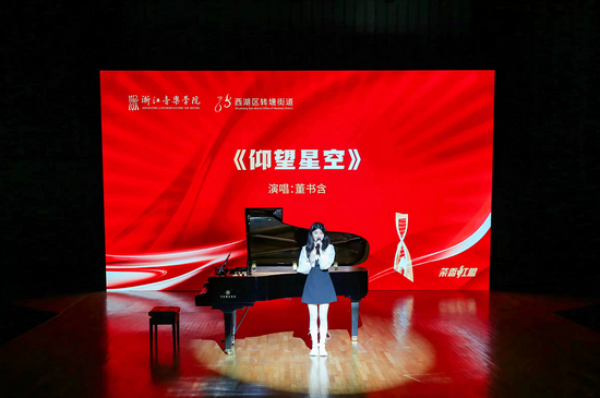乡村是形,文化是魂。实现乡村振兴需要外修生态,内修人文。浙音一直践行文化“普惠”理念,为乡村输送高质量的文艺作品,不断丰富百姓的精神文化生活。在何家村文化大礼堂里,动听的歌声、悠扬的弦乐,校地首场“红色乐音 赋能乡村”主题演出正如火如荼地进行着。在热情的欢呼声中,浙音师生为村民们带来了越歌《忆江南》、越剧折子戏《昭君出塞》、琵琶重奏《悄然》、歌曲联唱《月亮代表我的心》《甜蜜蜜》等耳熟能详的节目,特色鲜明、风格多样的文艺作品与青山绿水的茶园文化交相呼应,令村民不禁陶醉其中。