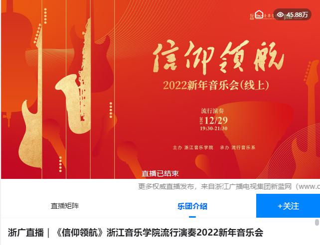 浙广直播:《信仰领航》浙江音乐学院流行演奏2022新年音乐会
