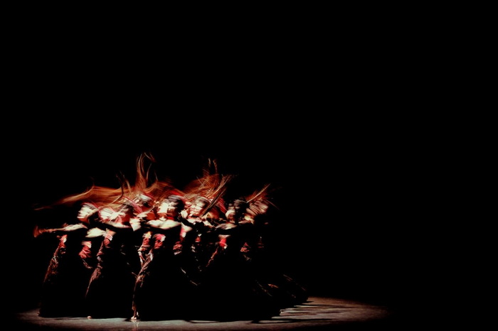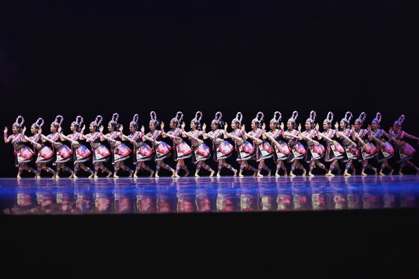 舞蹈演出题材丰富、特色独具:呈现良渚文化的《祀歌》从瑶山女性的视角去审视天地有灵,以舞祀天地的精神歌苍穹,歌生命。表现勇立潮头的《溯·跃》,则是讴歌蕴藏于浙江文化基因中的弄潮精神。一榫一卯,一转一折,含而不露,相生相克,以制为衡。《榫卯》凝视中国传统古建筑中流动的舞姿,让观众遇见榫卯之美。《山哈女》则描绘出了一幅美丽的畲族画卷:山烟渺渺,清泉迢迢,层峦叠嶂不掩畲女容颜秀;山歌声声,民寨层层,欢歌笑语轻抚畲女出嫁幸福泪。从《诗经·蒹葭》中获得创作灵感的群舞作品《白纻舞·在水一方》,通过行走中的停顿、张望、遮蔽又再现的不同循化的画面,将“溯洄从之”与白露从“为霜”“未晞”到“为已”的时间变化一点点暗示出,借以塑造出诗中描绘的“所谓伊人,宛在水中央、宛在水中坻、宛在水中沚”的诗词意境。