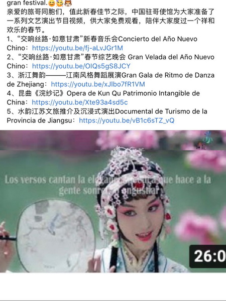 2月2日至28日,中国驻哥伦比亚大使馆携手浙江省文化和旅游厅,在使馆“脸书”官方账号平台推出浙江音乐学院精心打造的《浙江舞韵——江南风格舞蹈展演》云演出,为持续两个月之久的哥伦比亚“欢乐春节”中国文化月再添华彩,成为中国壬寅虎年春节、北京冬奥会及中哥建交42周年又一重大庆典活动。当地媒体纷纷推介、点赞并转发使馆云演出链接。加勒比国际戏剧节、“哥伦比亚音乐舞蹈之乡”伊瓦格和第三大城市“萨尔萨舞蹈之乡”卡利市政府等纷纷致函,诚邀其参演今年各地“中国文化节”的开幕式演出。