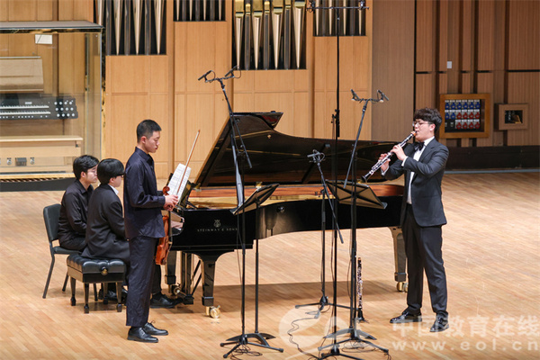 4月22日晚19:30,“相约浙音”周末音乐会系列进行了首场演出,由浙音管弦系、室内乐学院学生带来的“国际获奖选手音乐会”在浙音标准音乐厅精彩上演。演出汇聚了浙音管弦系、室内乐学院曾在马萨(Massa)国际青年音乐家比赛、巴列塔(Barletta) 国际青年音乐家大赛、意大利古典音乐家比赛、基耶蒂国际音乐比赛等国际赛事中获奖的优秀学生,集中带来了钢琴、提琴、单簧管等作品,展现了浙音管弦系、室内乐学院的教学成果,为观众带来一场国际领先水平的高质量音乐盛宴。