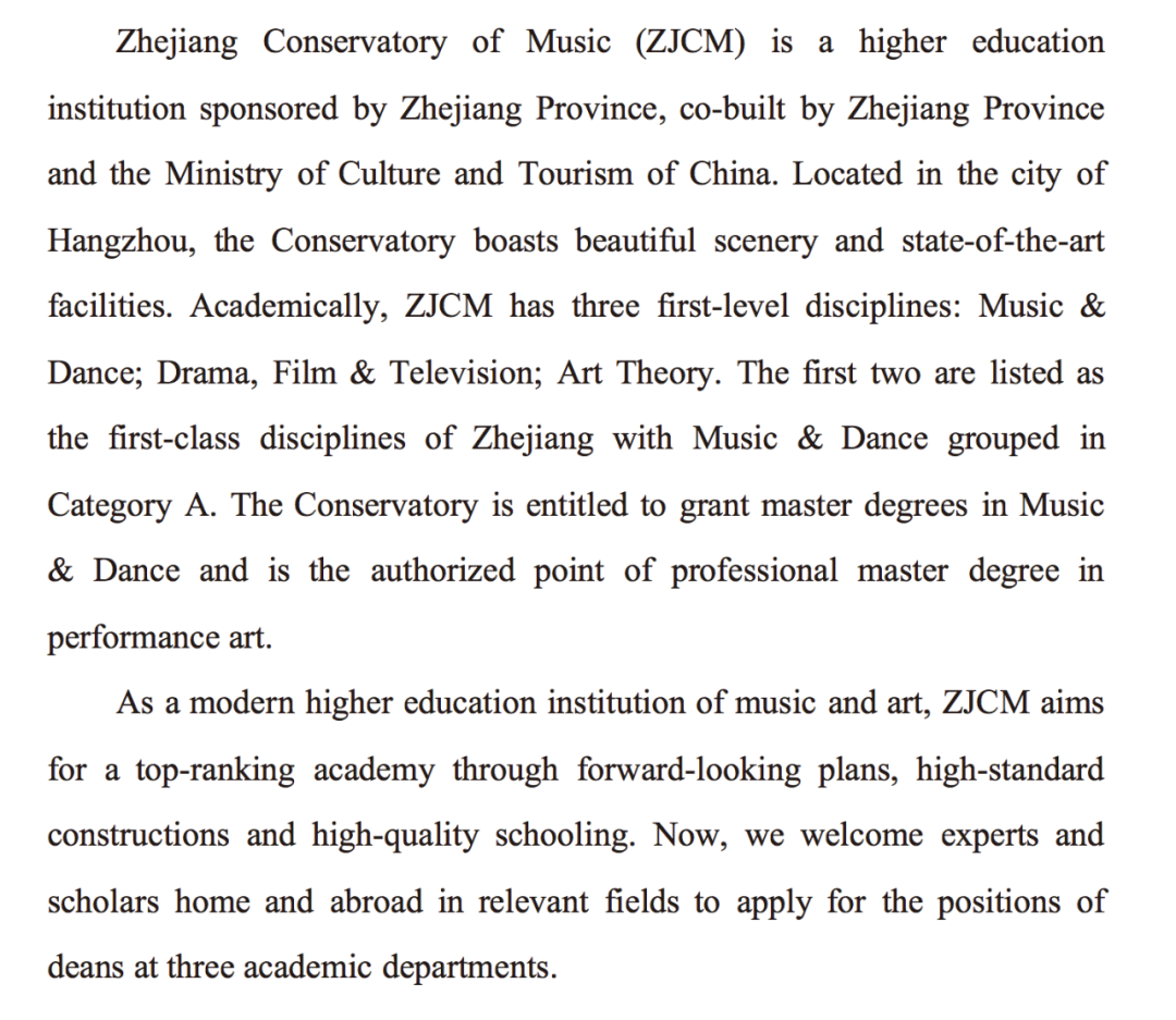 *附件:《浙江音乐学院公开招聘二级学院(系)院长、主任报名表》请点击阅读原文,或前往浙音官网——通知公告栏下载。