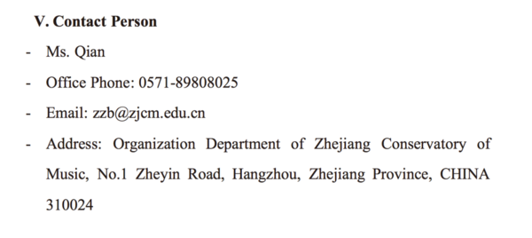 地址:浙江省杭州市浙音路1号浙江音乐学院组织部