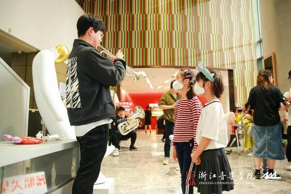 音乐会结束后,浙音学生们带着竖琴、巴松、双簧管、大号等一些平常较少见的乐器为小朋友们上了一堂“乐器普及启蒙课”。在哥哥姐姐们的耐心讲解下,小朋友们近距离、真实地感受了每种乐器,在音乐中找到乐趣。