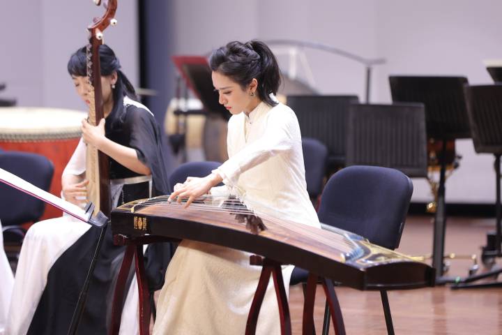 在浙江音乐学院国乐系主任、民族乐队学院艺术总监王甫建的指挥下,20位学员相继登台,表演了《风入松》《青竹》《瓷器》等国乐曲目,精湛的演奏技艺,充分展现出此次培训的教学成果和国乐丰富多姿的艺术魅力。