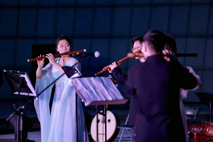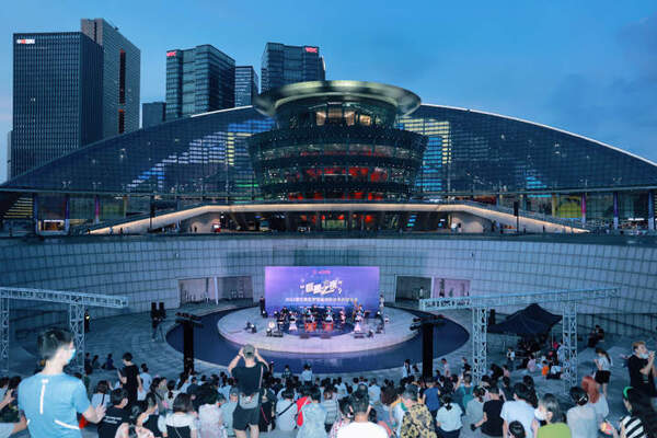 仲夏杭城,既有现代都市的霓虹璀璨,又有历史文化名城的意韵悠扬。7月2日晚,浙江音乐学院国乐系优秀学生在杭州大剧院露天广场下沉式舞台,为杭城市民带来一场户外公益音乐会,用动人音乐点亮杭城夜晚,以传统文化浸润百姓生活。