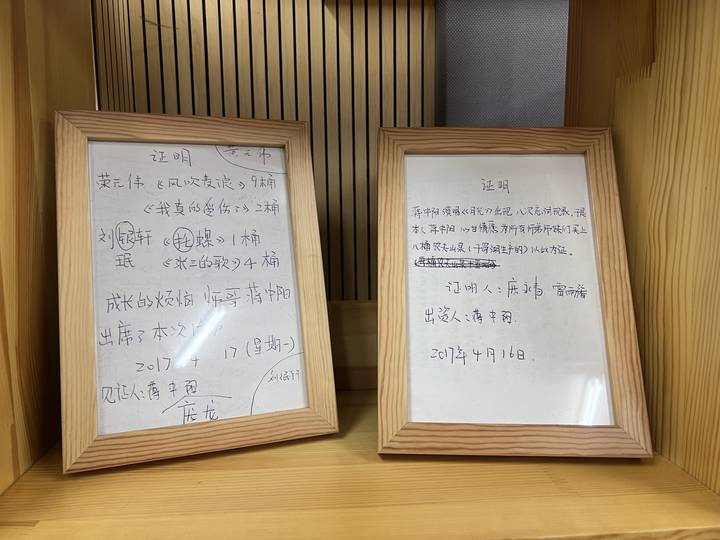 如今,他已在浙江音乐学院当了7年老师。杭州,也成为了他呆得最久的城市之一。庞龙在办公室中放置了一个大书架,都是关于学生的点点滴滴。其中有一格放置了学生在假期读过的书,不限题材、不限字数,等累积到了一定数量,他会捐赠。他希望音乐学院的学生不仅会唱歌、懂音乐,更要在其他广阔的领域中学会与他人共情。书架的最左边,还有两份被裱起来的证明,上面的话令人忍俊不禁:“演唱《月光》中出现八次忘词现象,本人心甘情愿为所有师弟师妹们买上八桶农夫山泉,以此为证。”庞龙说,这样的证明自己保存了一沓又一沓,意在让学生要以严谨的态度对待音乐。在学生眼里,他是严师,也是益友。他想带着这帮充满活力的年轻人,在浙江唱响更多诗情画意。