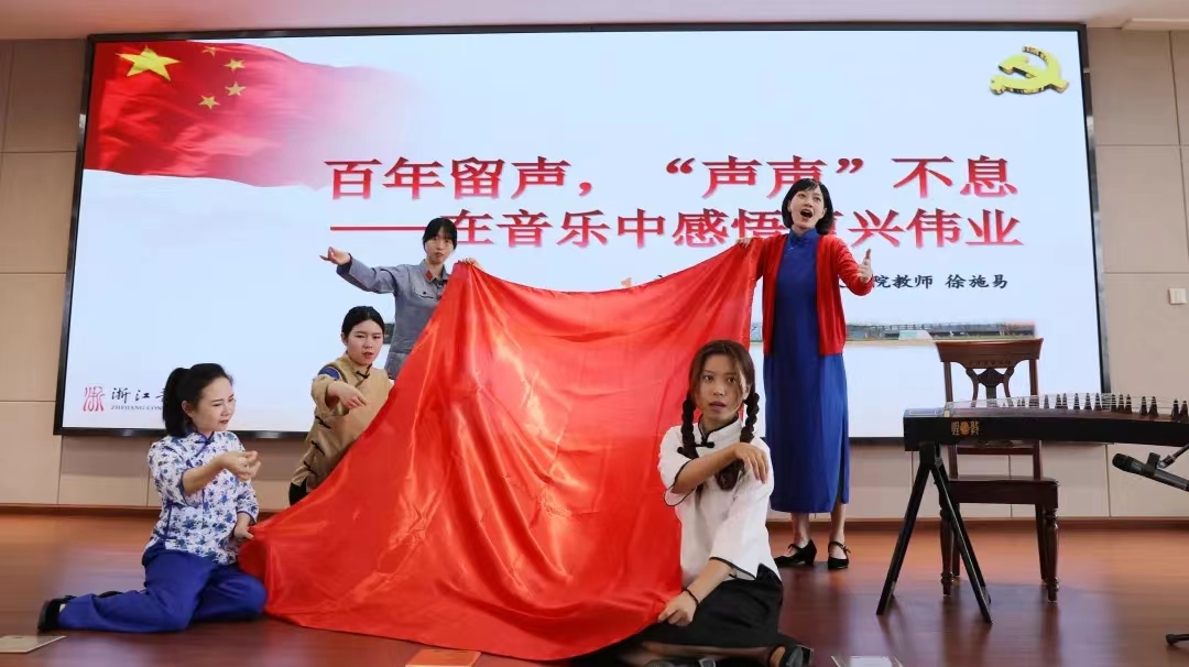“线儿长针儿密,含着热泪绣红旗绣呀绣红旗”“一针针一线线,绣出一片新天地。”7月7日,歌剧《绣红旗》片段在绍兴市柯桥区上演,实景再现了新中国成立时共产党人的激动与振奋,也拉开了浙音“文艺轻骑兵”党代会精神宣讲的序幕。深入学习贯彻省第十五次党代会精神是浙音“文艺轻骑兵”暑期社会实践的一项重要内容。浙音思政教师、青年团干和学生代表组成了“行走的宣讲留声机”,通过创新理论宣讲形式,深入生活、贴近群众。自暑假以来,“行走的宣讲留声机”先后在杭州、湖州、绍兴、衢州、嘉兴、宁波、丽水等地,面向机关干部、文化干部、中小学生、普通群众开展10余次宣讲,用形式多样的艺术宣讲将党代会精神“声”入人心。