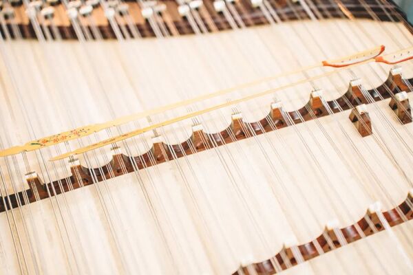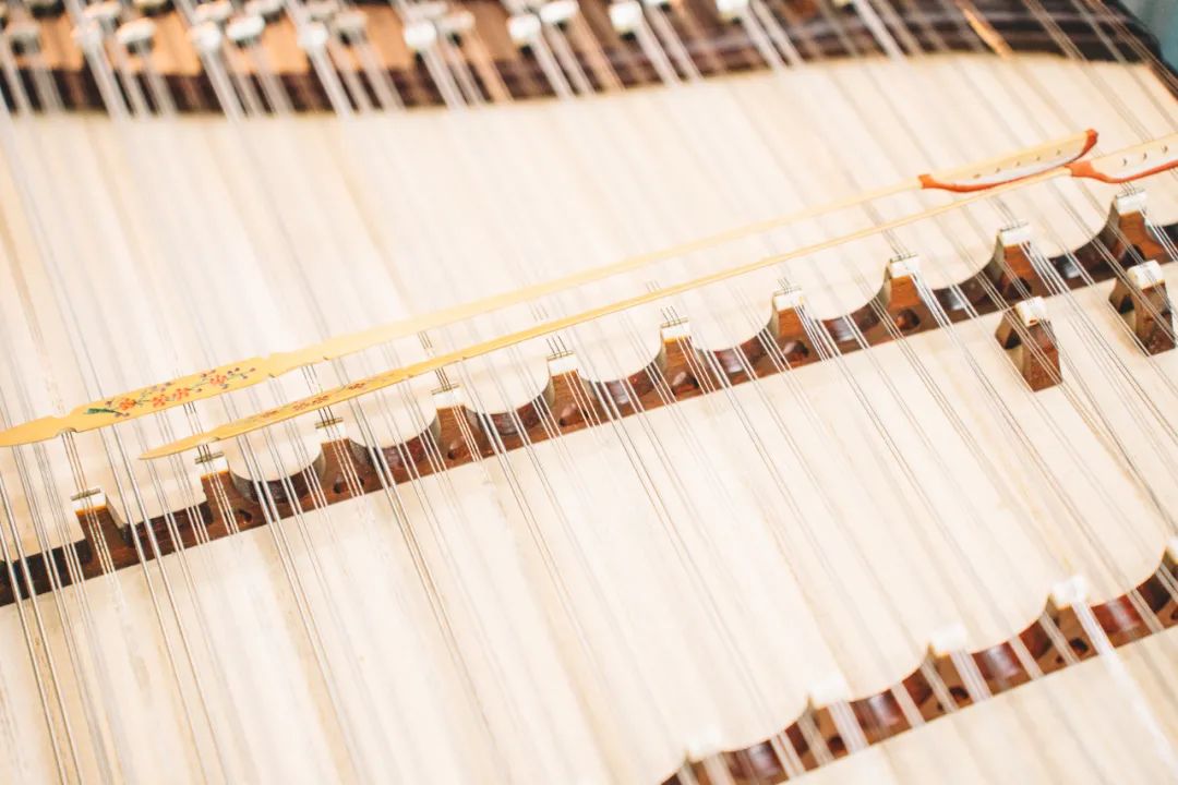 扬琴是我国常用的一种击弦乐器,与钢琴同宗,其音色具有鲜明的特点,音量宏大, 刚柔并济;慢奏时,音色如叮咚的山泉,快奏时音色又如潺潺流水。音色明亮,犹如大珠小珠落玉盘般清脆。