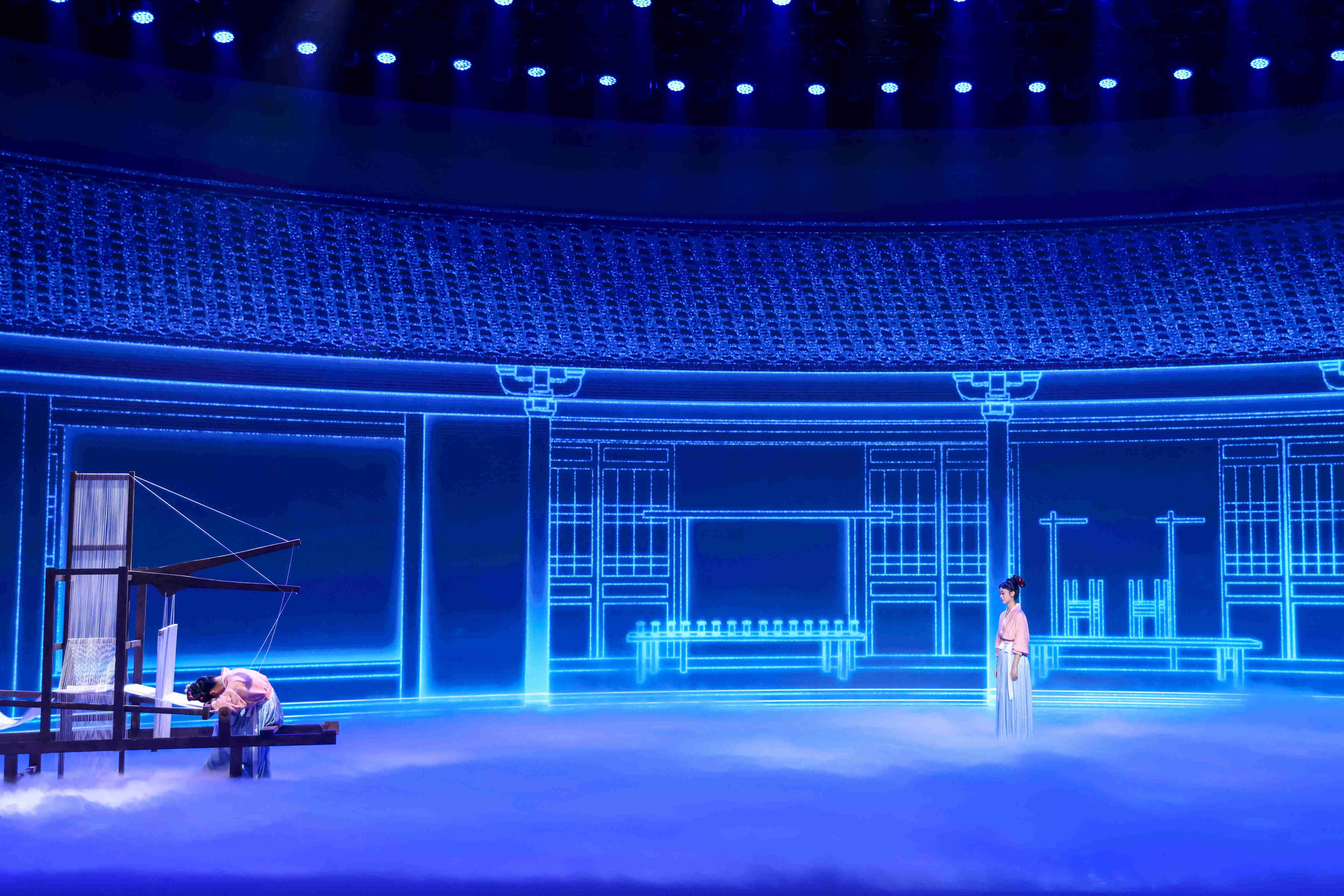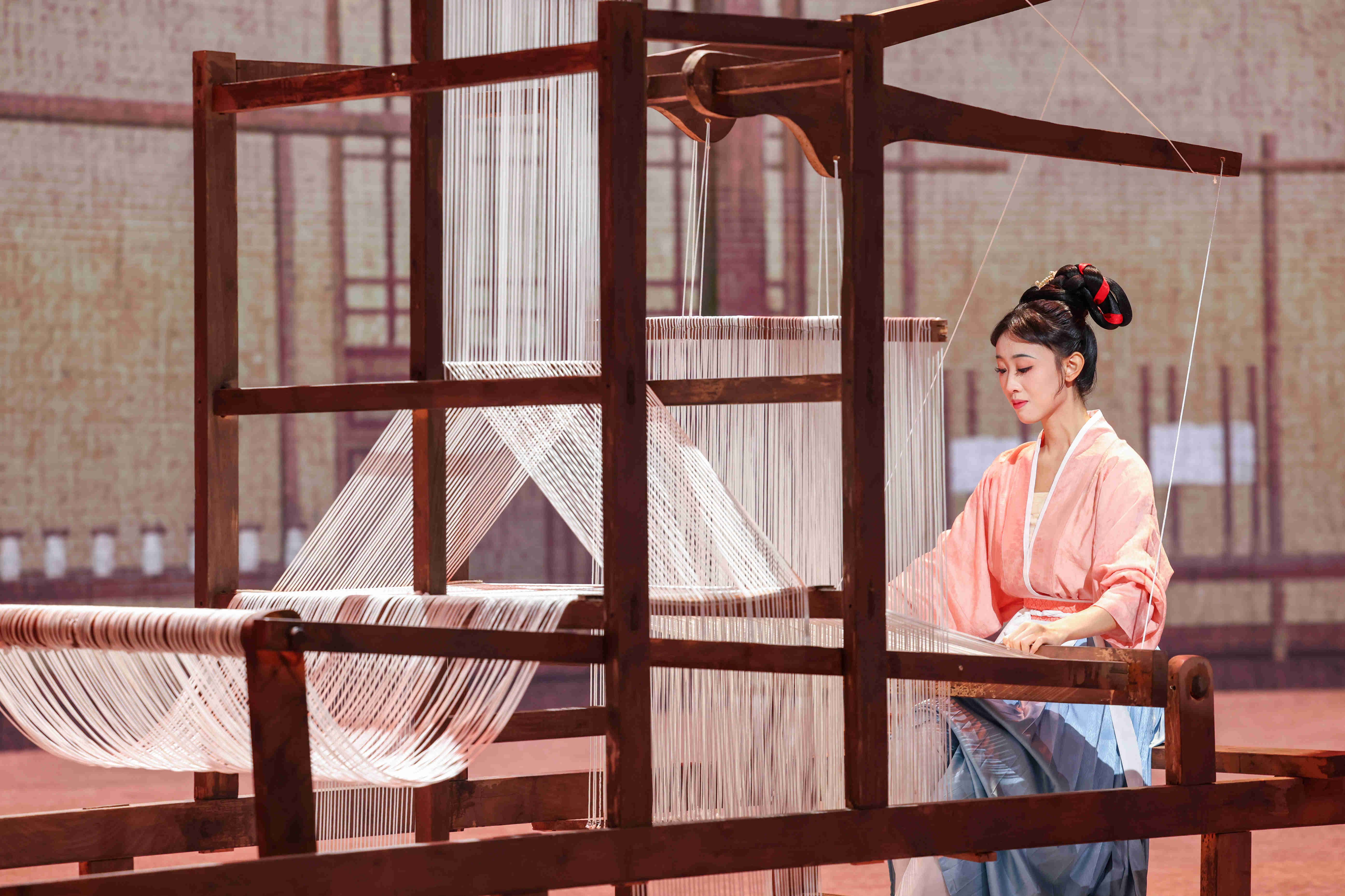 作品基调古朴柔美,典雅大气,在“古韵新声”主题下,进行改编,将古画场景“复原”,画中织女在劳作中渐入梦境,从而展现出梦中仙境、绸缎翩然流动的美丽画面。