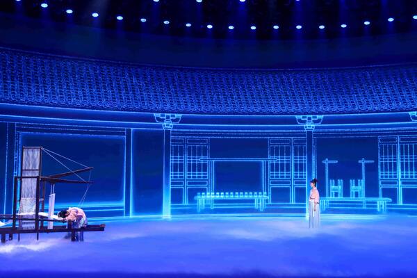 作品《织·梦》改编自浙音原创舞蹈《白纻舞·在水一方》,展示了中国传统的“女织”风俗,颇具江南审美意象。舞台上,青年教师李秋竹及喻佳颖、周莹、林可欣、周李斯、潘莉丽、宋嘉霏、张宁、王施懿、钱怡静、祁熙涵、曹睿颖、管筱歆、李一凡、吴易芝、卓雅15位同学,将传统纺织技艺融入舞蹈动作,以纺织女工的梦境作为载体,通过舞蹈与现代科技交融的形式,将织女的巧艺与对美满生活的向往呈现在诗情画意的山水意境之中,将南宋古画《蚕织图》缓缓展开,为观众带来一场古今相通,美轮美奂的艺术体验。
